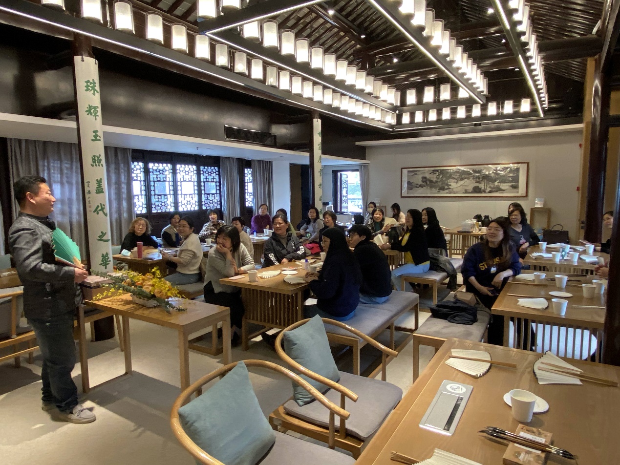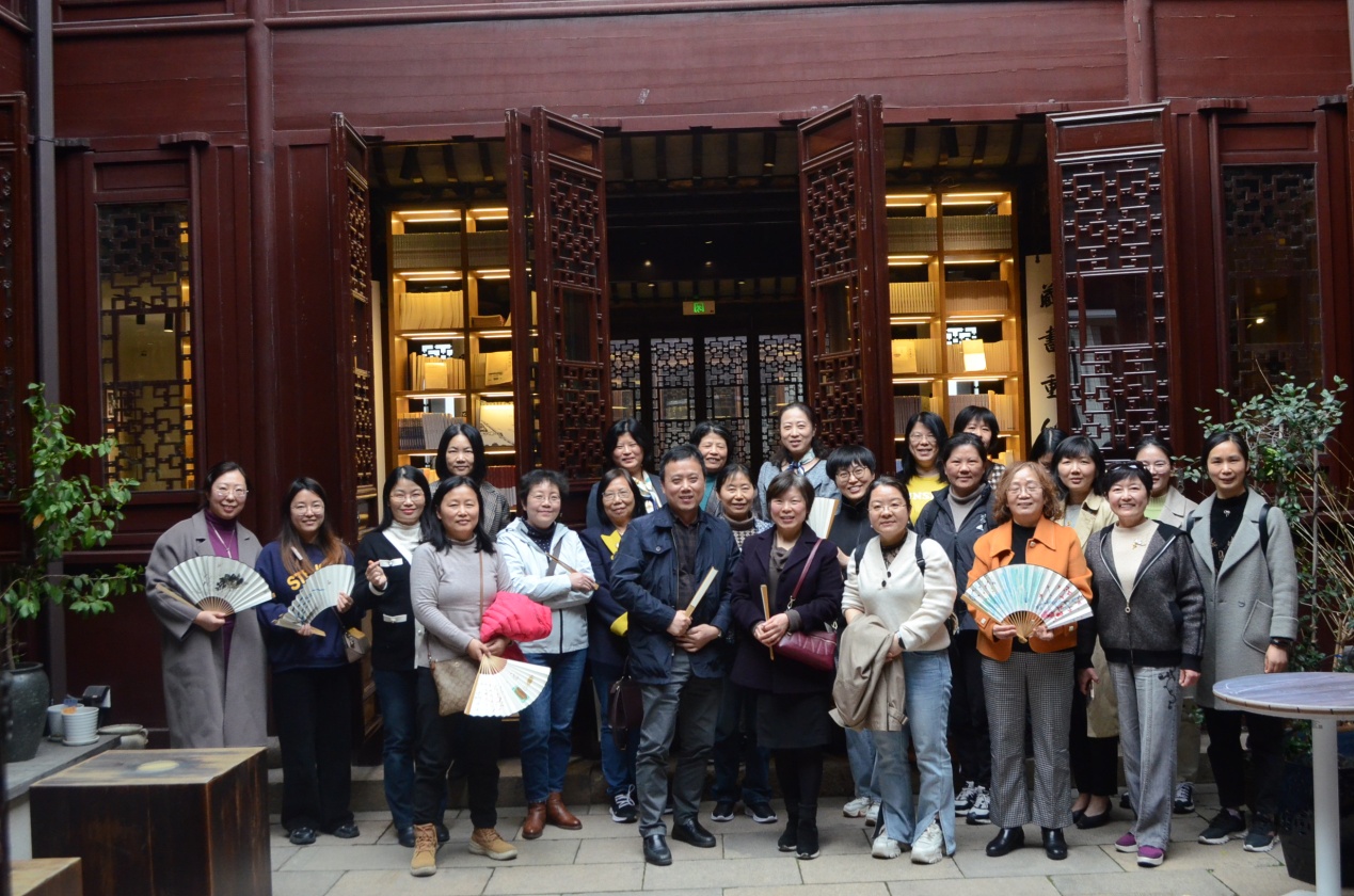 制作结束后,女教工们集体参观了探花府,寻访了“拂梭千年”的缂丝技艺,聆听了战乱期间发生在探花府藏宝院中,潘家人守护大盂鼎和大克鼎两件国宝的传奇故事,感悟了潘达于女士在解放后将两件传世国宝无私捐赠给国家的爱国情怀。