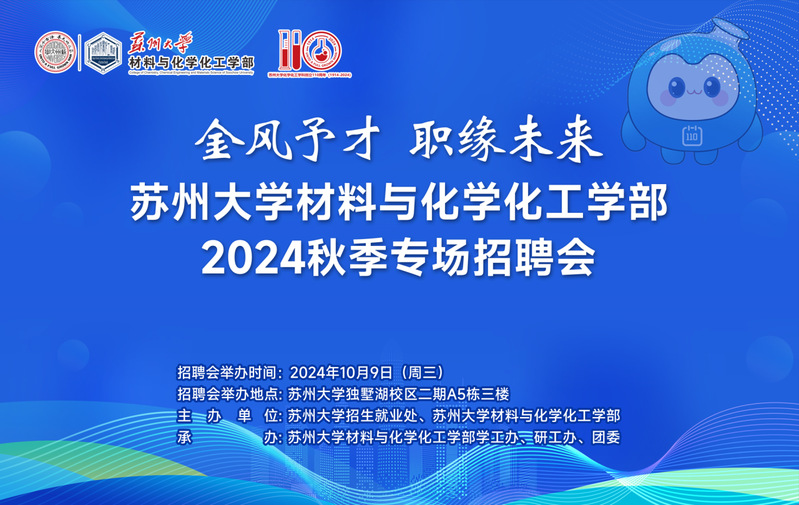 为深入贯彻习近平总书记关于做好“六稳”“六保”工作重要指示精神,落实党的二十大报告中提出的“强化就业优先政策,健全就业促进机制,促进高质量充分就业”的就业战略,切实做好高校毕业生就业观引导工作,2024年10月9日下午,韩国a片 材料与化学化工韩国a片 在独墅湖校区二期A05三楼招聘大厅举行了“金风予才,‘职’缘未来”2024秋季专场招聘会。