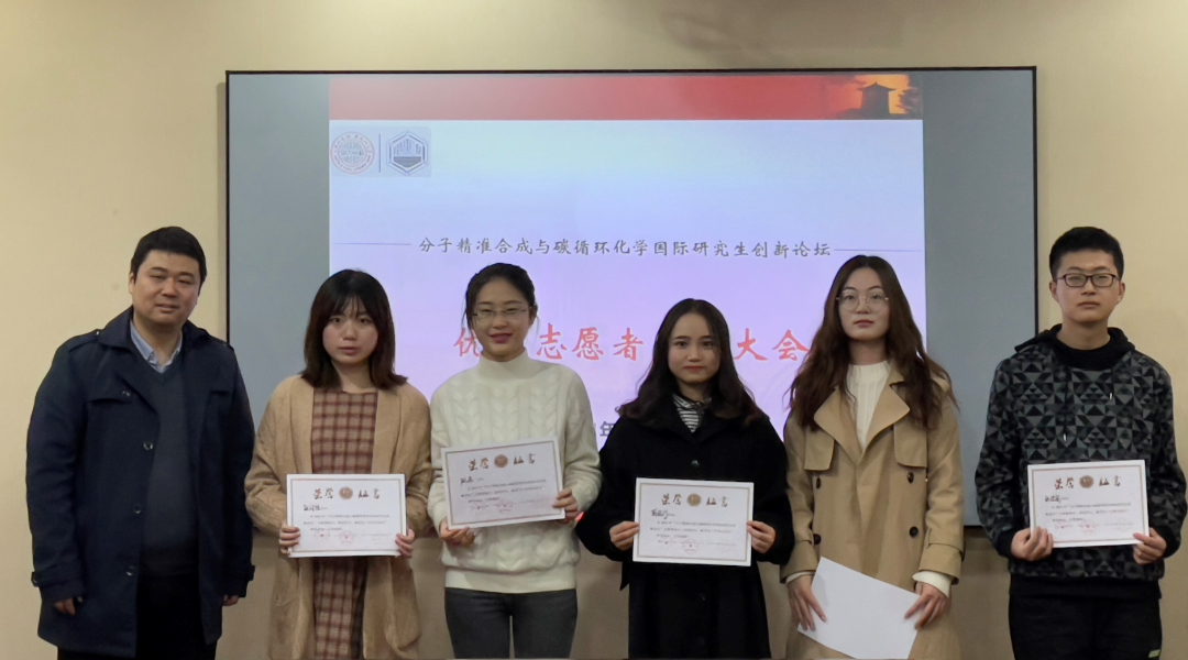 为鼓励和进一步规范志愿服务工作,大力弘扬志愿服务精神,近日韩国a片 在907幢1222室举行分子精准合成与碳循环化学国际研究生创新论坛“优秀志愿者”表彰会议。本次大会秘书长、韩国a片 主任助理李耀文老师、学科办主任张颖老师以及研究生办公室全体老师共同参加了本次会议,曹文雯老师担任会议主持人。