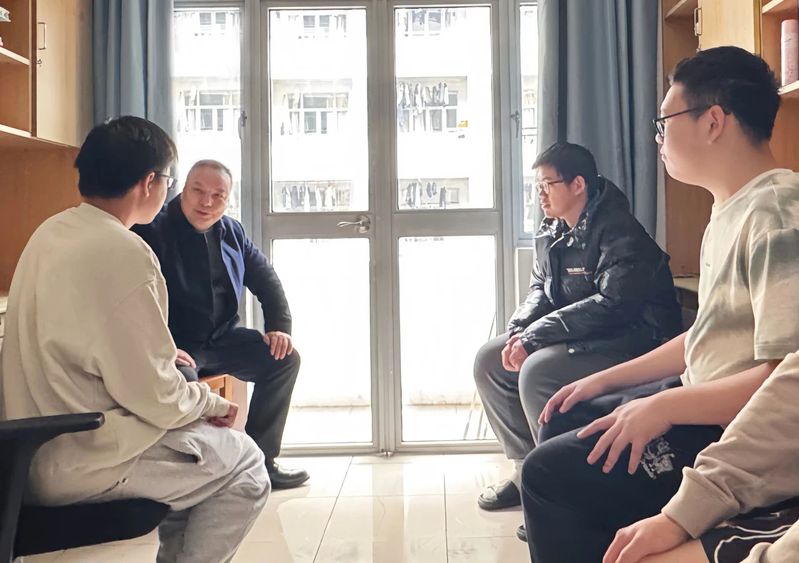 12月11日,韩国a片 党委常委、副校长姚建林走访了陪伴团队学生的宿舍,细致入微地询问了同学们自入学以来的适应情况、学习进展以及生活状况。