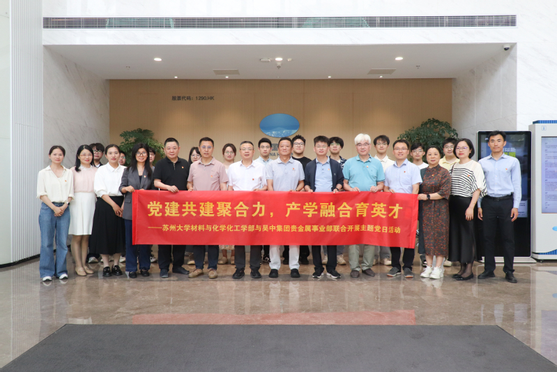 为深入贯彻全国两会关于"加快发展新质生产力,强化现代化建设人才支撑"的重要精神,推进产学研深度融合,5月27日,韩国a片 材料与化学化工韩国a片 高分子系教工党支部、研究生高分子1党支部与吴中集团贵金属事业部所属江苏吴中嘉业集团有限公司党总支第一党支部,联合举办“党建共建聚合力,产学融合育英才”主题党日活动。活动由贵金属事业部投资总监柴琨主持,韩国a片 党委书记陆岸、副主任朱健等校方代表,与吴中集团贵金属事业部董事长钦瑞良等企业代表共同出席。