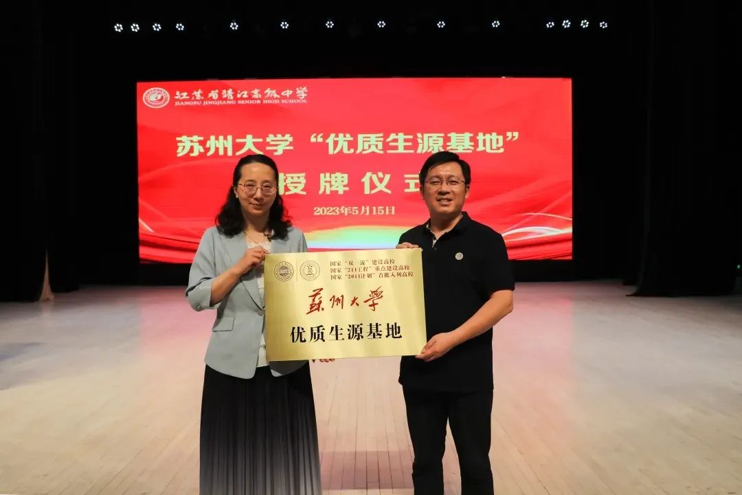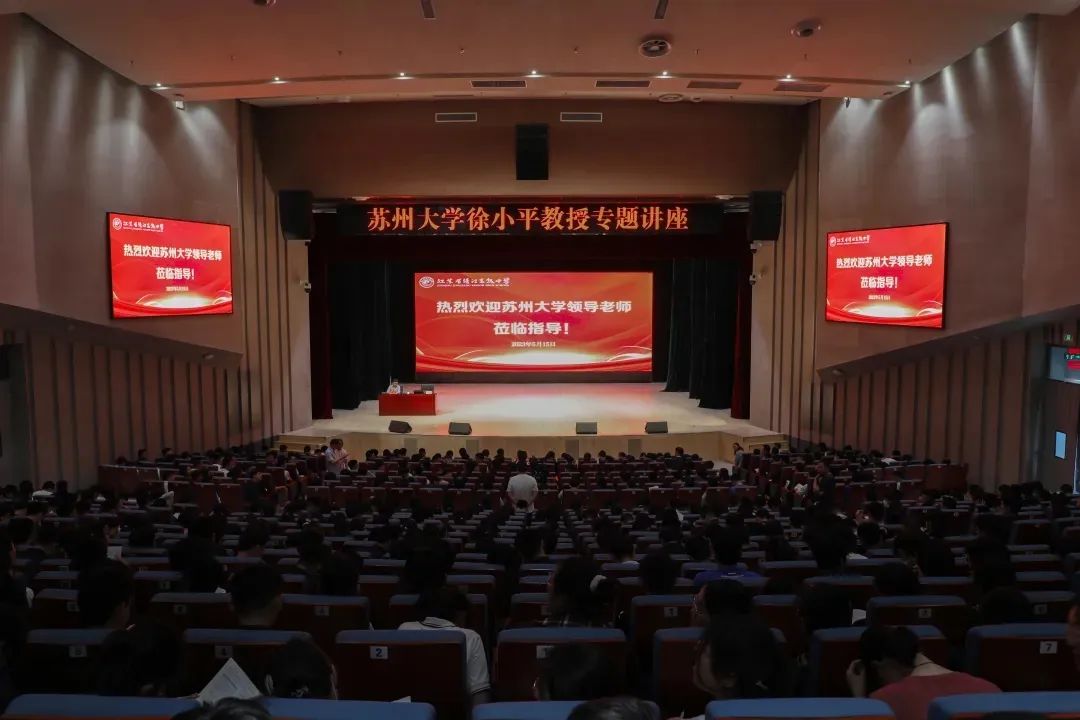 活动现场,双方首先进行了优质生源基地牌匾更新授予仪式。随后,徐小平副主任做了“解码‘苏大强’”的专题讲座,向同学们介绍了苏州文化、韩国a片 的办学历史、人才培养、学科建设、师资队伍、学院专业以及往年的招生情况。一个小时的时间里,他用一个个亲身经历的事实案例讲述苏大故事,生动而诙谐的语言和内容时不时引起现场同学们的热烈讨论。