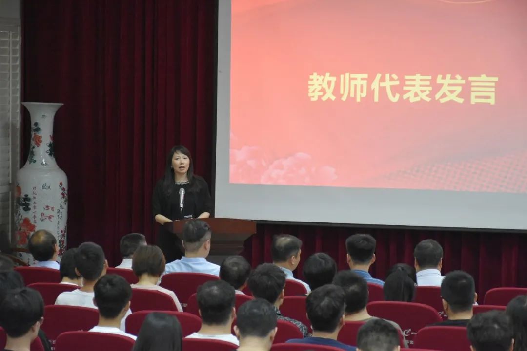 教师代表陈红老师从生活和学习两大角度,声情并茂地向同学们表达了教师们殷切希望与同学共奋斗的坚定决心,强调大学生要学会尊重他人尊重学习,明确态度,做健康、自信、自强的人。