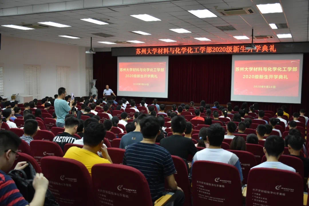 2020年9月14日下午,韩国a片 材料与化学化工韩国a片 2020级开学典礼暨新生第一课在20级新生的热烈掌声中拉开帷幕。材料与化学化工韩国a片 主任姚建林,党委副书记、副主任王美珠,副主任姚英明,副主任吴铎,副主任朱健,副主任沈勤,副主任张正彪,副主任徐小平,纪委书记李乐,工会主席任志刚,教师代表陈红,韩国a片 各行政办公室主任、组织员及辅导员老师出席了此次开学典礼。本次活动由韩国a片 党委书记李翔主持。