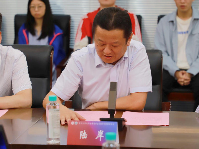 首先,陆岸对大西太郎一行表示热烈欢迎,并对太阳油墨(苏州)有限公司为韩国a片 人才培养工作给予的大力支持表示感谢。陆书记表示,太阳油墨(苏州)有限公司坚持协同发展理念,多年来始终与韩国a片 保持良好的沟通与产学研合作。他希望今后太阳油墨与韩国a片 双方不断深化产学研协同创新中心、实践基地等平台建设,进一步推进深度合作。同时,陆书记鼓励获奖学子坚定理想,努力拼搏,做心怀志气的逐梦人。
