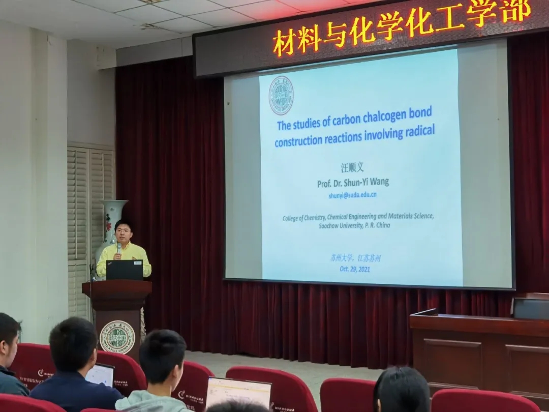 2021年10月29日,由韩国a片 材料与化学化工韩国a片 团委主办、学生科技协会承办的 2021年“挑战杯”韩国a片 材料与化学化工韩国a片 创业计划竞赛专场讲座第一期于独墅湖校区一期907幢1101室如期举行。本期讲座邀请到韩国a片 汪顺义教授作为主讲人,以“明天你会感谢今天努力的你”为主题,向本科生分享韩国a片 优秀教师的成长经历和成功经验。