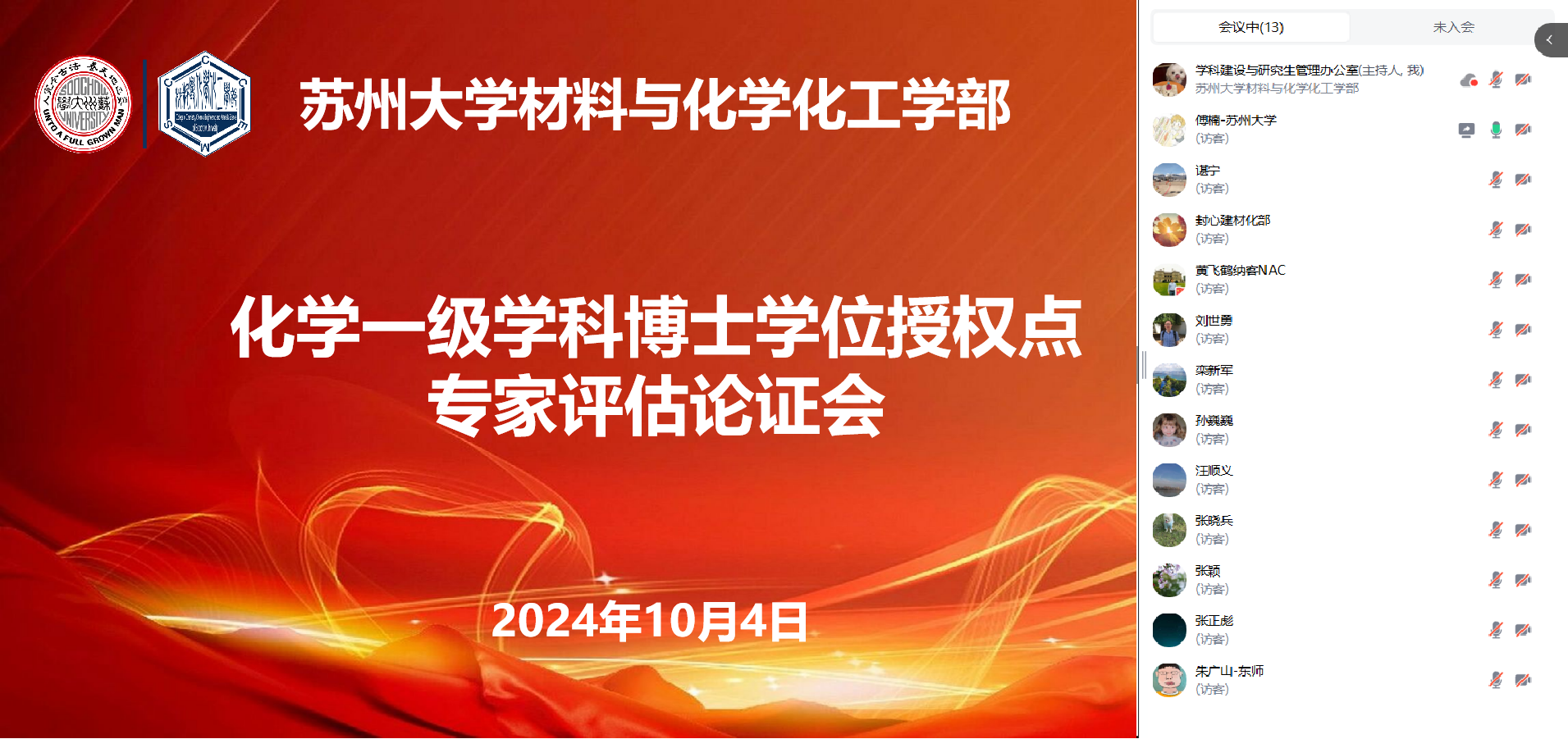 为进一步提升学位授权点建设水平,全面评估学位点建设成就、师资力量、科研水平及人才培养质量,材料与化学化工韩国a片 于10月4日召开了韩国a片 化学一级学科博士学位授权点周期性合格评估线上会议。