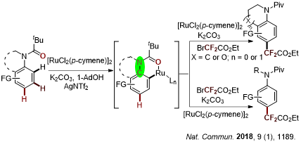 5. Yuan, C.; Zhu, L.; Chen, C.; Chen, X.; Yang, Y.; Lan, Y. *; Zhao, Y.*, Ruthenium(II)-enabled para-selective C–H difluoromethylation of anilides and their derivatives. Nat. Commun. 2018, 9 (1), 1189.