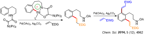 11.Wang, Q.; Han, J.; Wang, C.; Zhang, J.; Huang, Z.; Shi, D.*; Zhao, Y.*, Highly site-selective sequential alkenylation of oxalyl amide protected phenylpropylamine derivatives via a seven-membered palladacycle. Chem. Sci. 2014, 5 (12), 4962-4967.