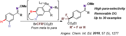 6.Yuan, C.; Zhu, L.; Lan, Y.*; Zhao Y*., Ruthenium(II)‐Catalyzed C−H Difluoromethylation of Ketoximes: Tuning the Regioselectivity from the meta to the para Position. Angew. Chem. Int. Ed. 2018, 57 (5), 1277-1281.
