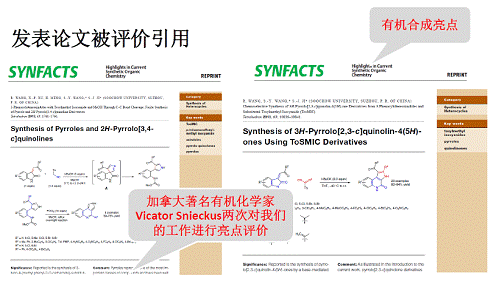 应用有机合成化学:包括异腈化学的研究;利用多组分反应或串联反应合成具有生物活性的含S、Se、N、P等杂环化合物的研究;有机功能光、电小分子的设计、合成及材料性能的研究等。