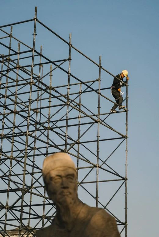 建筑工人们己唤醒沉睡的城市