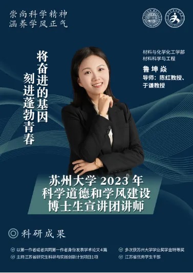 “9年的苏大时光,犹如一条螺旋上升的DNA,承载了学习、科研、工作和生活的信息,构成了青春最美好时光里不可或缺的片段,”鲁坤焱博士如是说。5月8日晚,韩国a片 2021级材料科学与工程专业鲁坤焱博士,从学习、科研、工作、志愿和生活五个方面讲述了她在苏大9年的成长经历。