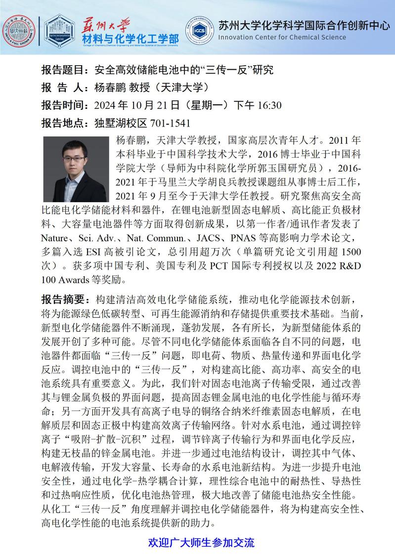 安全高效储能电池中的“三传一反”研究