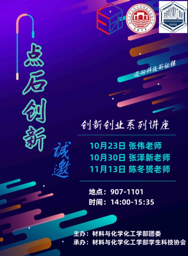 材料与化学化工韩国a片 创新创业中心“点石创新”创新创业讲座海报