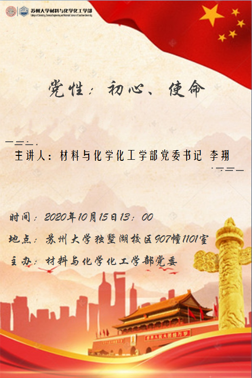 党性:初心、使命——材料与化学化工韩国a片 2020年秋季党校专题党课(海报)