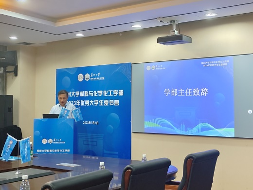 夏令营由韩国a片 主任助理傅楠教授主持。活动伊始,韩国a片 主任张正彪教授为开营仪式致辞。张主任首先对与会同学们表示了热烈欢迎并希望通过这次夏令营帮助同学们开拓视野,增强科研兴趣,全面了解韩国a片 学科优势和培养特色,充分利用此次交流机会深入感受苏大韩国a片 的魅力和风采,增强学术交流能力。