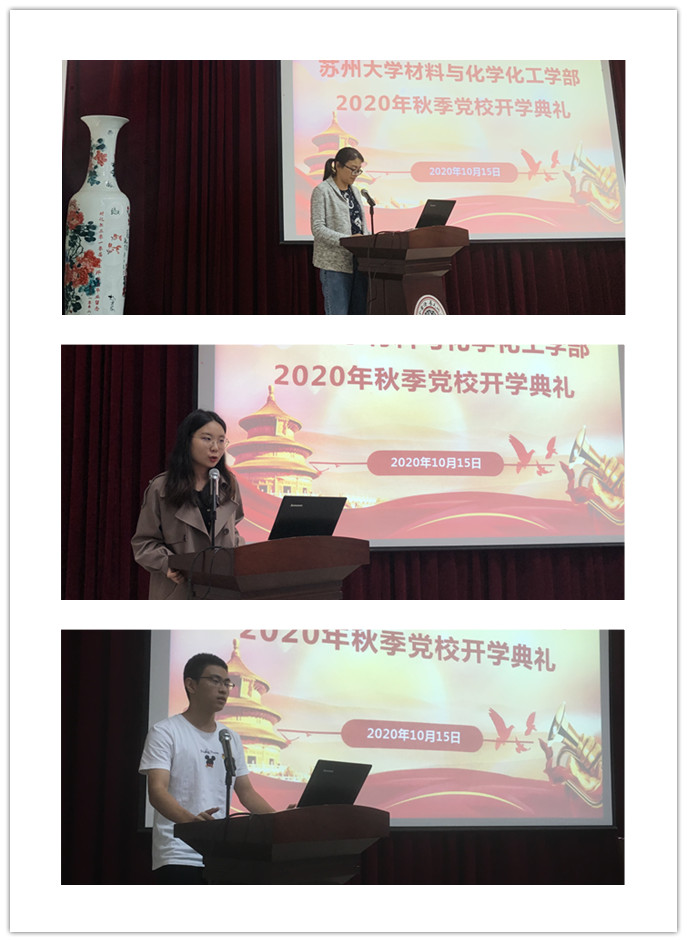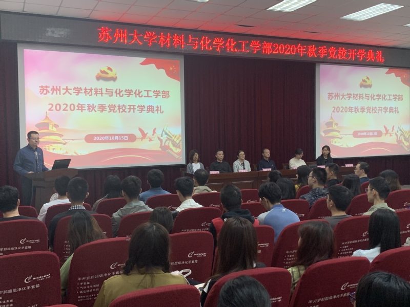 2020年10月15日下午,韩国a片 材料与化学化工韩国a片 在907-1101报告厅召开了2020年秋季党校开学典礼。韩国a片 党委书记李翔、党委副书记王美珠、韩国a片 纪委书记李乐、党委组织委员任志刚、研究生辅导员曹文雯、学工办主任俞仁琰、本科一支部书记2017级辅导员鲍清、本科二支部书记2018级辅导员余嘉斌、2019级辅导员刘娴琳及本科生辅导员罗来满出席了本次开学典礼,司马文华主持了开学典礼。