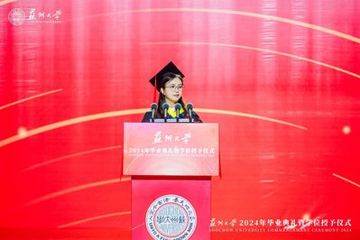 值此启程之际,我代表所有毕业生,祝福我们自己前程似锦、梦想成真!祝福我们尊敬的老师们桃李芬芳、教泽绵长!祝福我们最热爱的苏大驰骋山海、再谱华章!请母校放心,我们定将时刻牢记嘱托,砥砺前行,用心感应时代脉搏,把个人梦融入到伟大的中国梦!亲爱的同学们,让我们一起以青春之名,凝聚力量,扬帆起航,为实现强国梦建功立业!