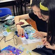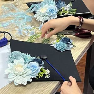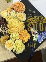 粘上繁花似锦的回忆,写下离别启程的寄语。活动现场,毕业生们沉心设计与创造之中,忘记了指缝中的时间,毕业帽也渐渐从单一的黑色到枝繁叶茂、百花争艳的彩色,绽放出独一无二的绚丽。