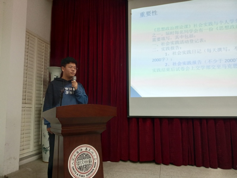 2020级刘德彬介绍思想政治理论课社会实践的相关内容,强调思想政治理论课社会实践是必修课程,一共有2学分。通过社会实践走出校园,同学们深入基层开展各种实践活动,通过社会观察和实际体验把学到的知识转化为服务社会的本领,在实践中认识国情、奉献社会、 提高素质,更好更快地投入全面建设社会主义现代化国家新征程。