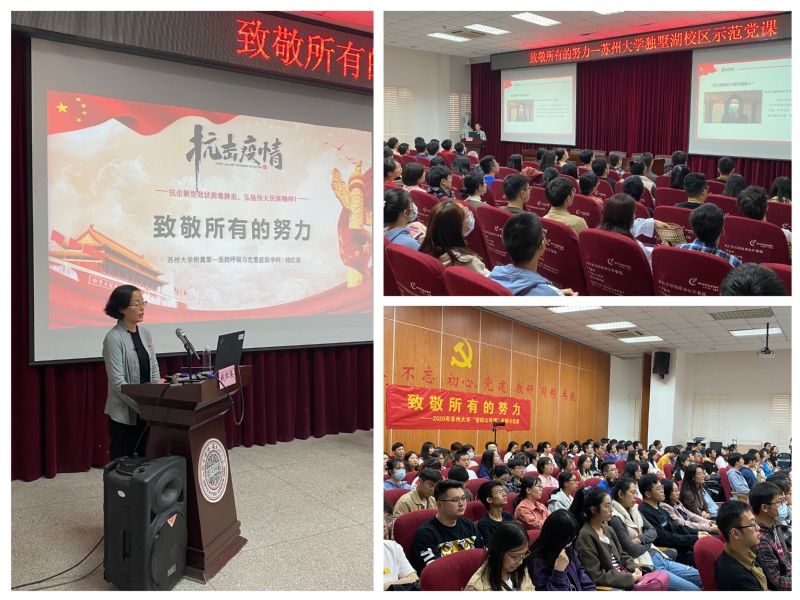 2020年11月18日,韩国a片 党校独墅湖校区培训基地邀请韩国a片 附属第一医院呼吸科护士长、江苏第五批支援湖北医疗队队员,“全国抗击新冠肺炎疫情先进个人”获得者钱红英,在材料与化学化工韩国a片 907幢1101室为独墅湖校区党校学员、韩国a片 全体师生党员开讲了题为《致敬所有的努力》的示范党课。此次党课由韩国a片 党委副书记王美珠主持。