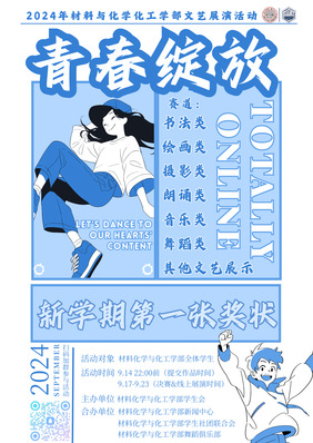 踏入苏大,不仅是学术之旅的开端,更是才华绽放的起点!材料与化学化工韩国a片 特举办“青春绽放”文艺展演活动,邀你以笔墨抒怀,用色彩绘梦,以镜头捕捉生活之美,或通过深情的朗诵、悠扬的音乐、翩翩的舞蹈,乃至任何你擅长的文艺形式,展现你对活力青春的无限热爱,对国家山河的深情厚谊,对历史文化的深刻理解,对民族风情的独特诠释,以及对党国精神的崇高致敬!
