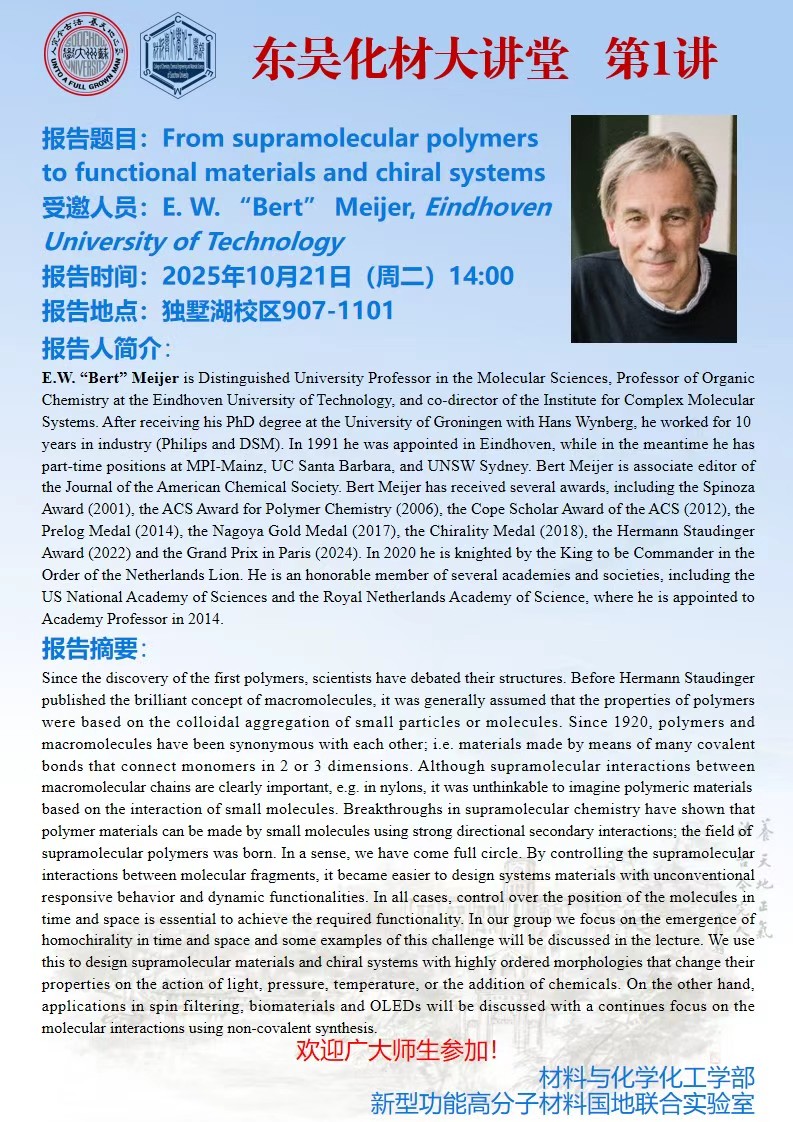 东吴化材大讲堂 | 第1讲:From supramolecular polymers to functional materials and chiral systems