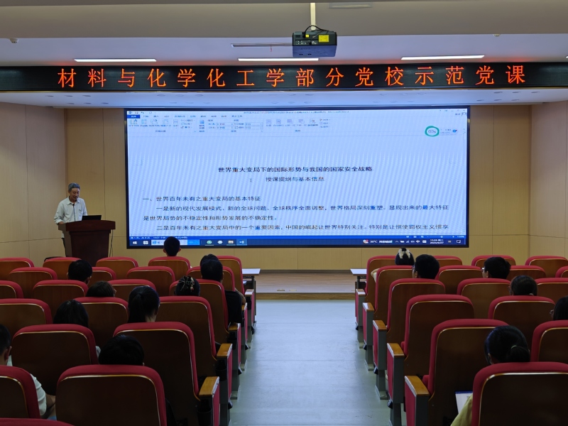 2023年9月27日,材料与化学化工韩国a片 分党校在907-1101举办示范党课,党校师资库教师、韩国a片 统战部原部长张雪根应邀为同学们讲授世界重大变局下的国际形势与我国的国家安全战略。学部预备党员、发展对象、入党积极分子,以及来自韩国a片 各学院、机关等学员共约200人参加了本期学习。