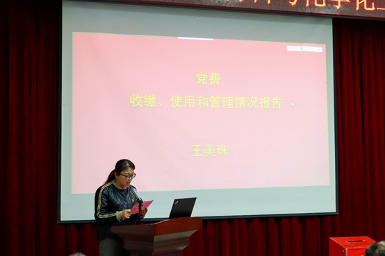 大会第一项议程,李翔代表韩国a片 党委作工作报告,汇报韩国a片 党委4年来的工作内容、完成情况、不足之处以及未来目标,大会审议通过报告。大会第二项议程,王美珠作党费收缴、使用和管理情况报告,大会审议通过报告。