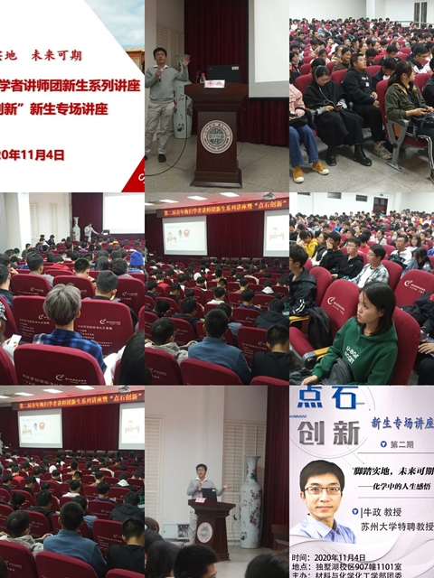 2020年11月4日,由材料与化学化工韩国a片 团委主办,学生科技协会承办的第二届青年海归学者讲师团新生系列讲座暨“点石创新”新生专场讲座于韩国a片 独墅湖校区907幢1101室举办。本次讲座邀请到牛政教授主讲,2020级新生参加讲座,旨在培养同学们对化学学习的兴趣与动力,为以后更深入的学习打下扎实的基础。