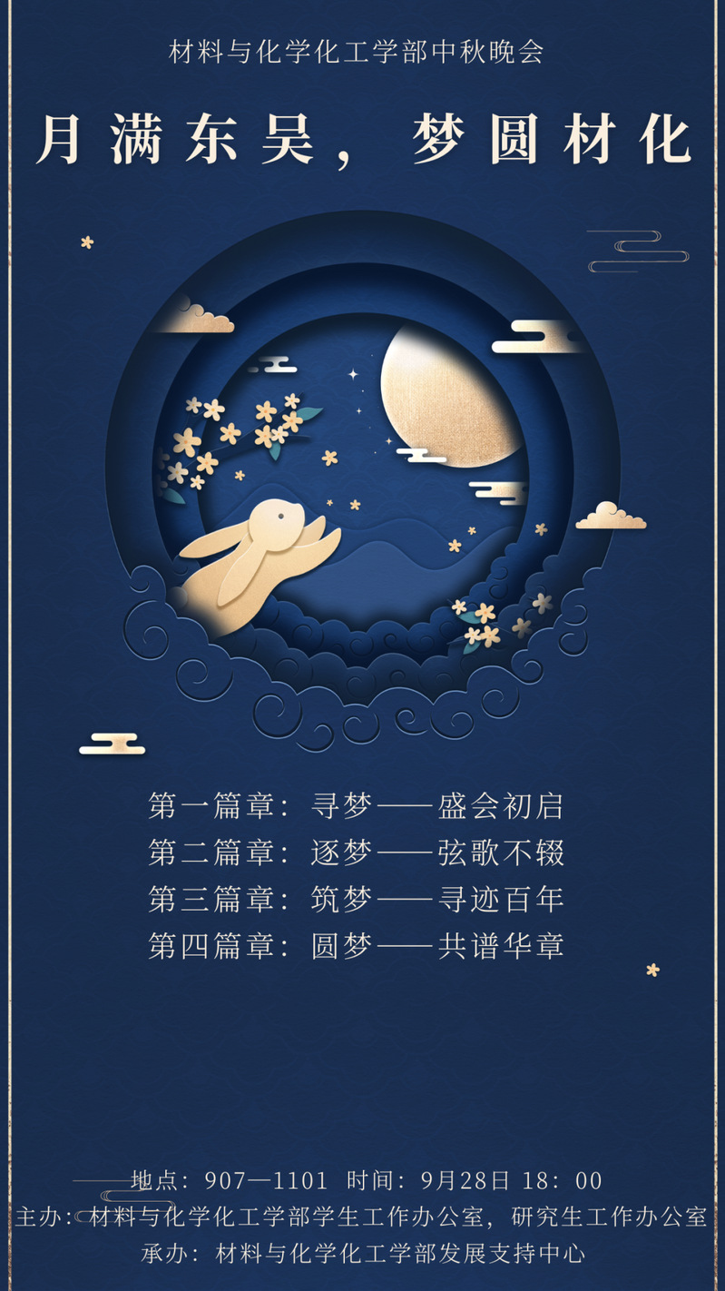 金风荐爽,玉露生凉,丹桂香飘,银蟾光满。中秋佳节将至,东吴良宵月圆。材料与化学化工韩国a片 于9月28日18:00在907-1101举办中秋晚会,诚挚邀请各位老师与同学参加!