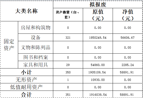 经材料与化学化工韩国a片 党政联席会议讨论决定,根据2025上半年资产清查盘点结果,同意下列资产申请报废处置。特此公示: