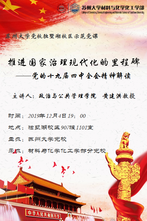 推进国家治理现代化的里程碑——党的十九届四中全会精神解读(独墅湖校区示范党课海报)