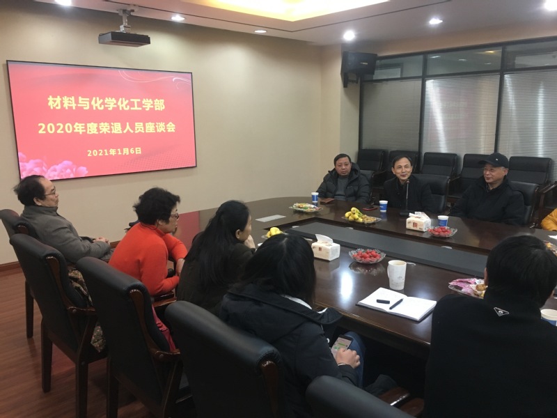 2021年1月6日下午,材料与化学化工韩国a片 在907号楼1222会议室召开了2020年度荣退教职工座谈会,韩国a片 党委李翔书记、王美珠副书记、纪委李乐书记、沈勤副主任、韩国a片 综合办蔡琪主任、党委组织员司马文华以及团委副书记鲍清老师参加了会议,退协分会、退休支部负责人刘洪波、王丽华、陈钰辉,退协分会前理事长、退休支部书记马桂林老师也应邀参加了会议,会议韩国a片 党委委员、工会主席任志刚主持。