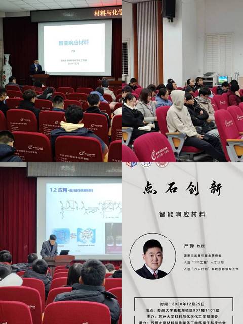 独墅湖校区一期907幢1101室举办。本次讲座邀请到严锋教授作为主讲人,20级新生参加讲座,旨在向同学们介绍当代智能响应材料与仿生材料的发展,为同学们的未来发展提供更广阔的视野。