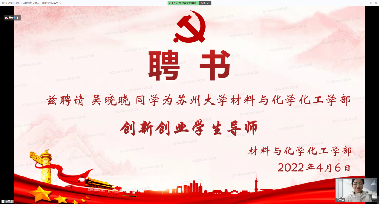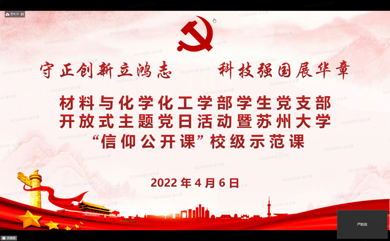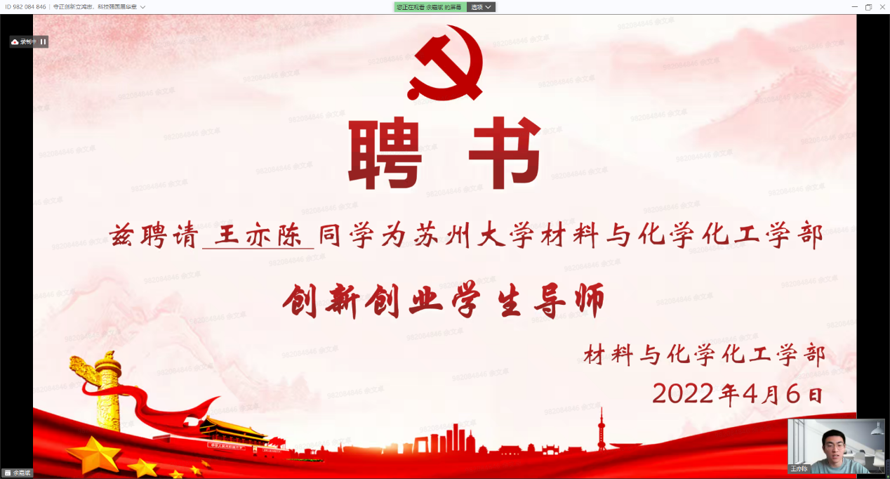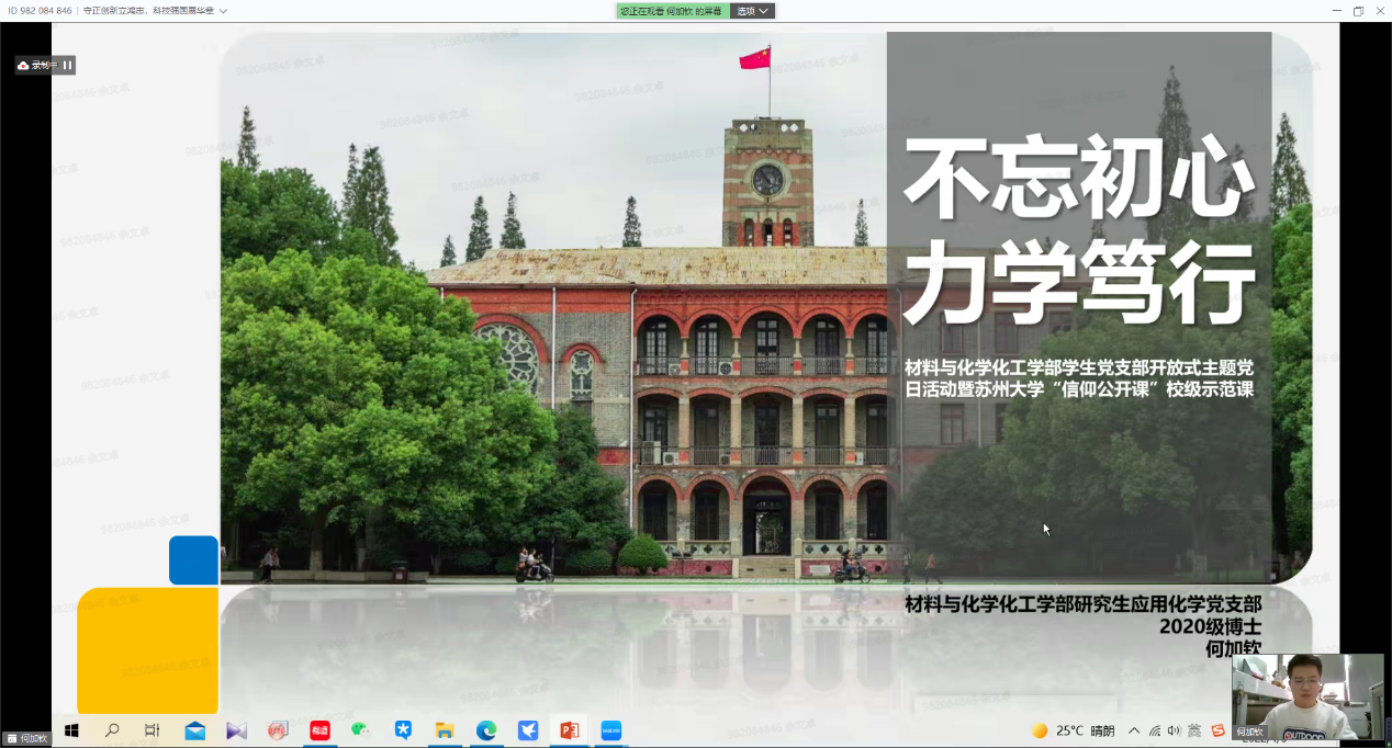 党委委员、纪委委员,“挑战杯”全国大学生课外学术科技作品竞赛、“挑战杯”中国大学生创业计划竞赛、中国国际“互联网+”大学生创新创业大赛获得者代表,各学院(部)师生代表等出席本次活动。身处天南地北的苏大学子们相聚在一起,在“守正创新,科技报国”、“踔厉奋发,勇担使命”、“请党放心,强国有我”三大篇章中把握时代脉搏,从党的守正创新中汲取青春力量,赓续新时代科学家精神理想火炬,凝聚创新创业不竭动力。