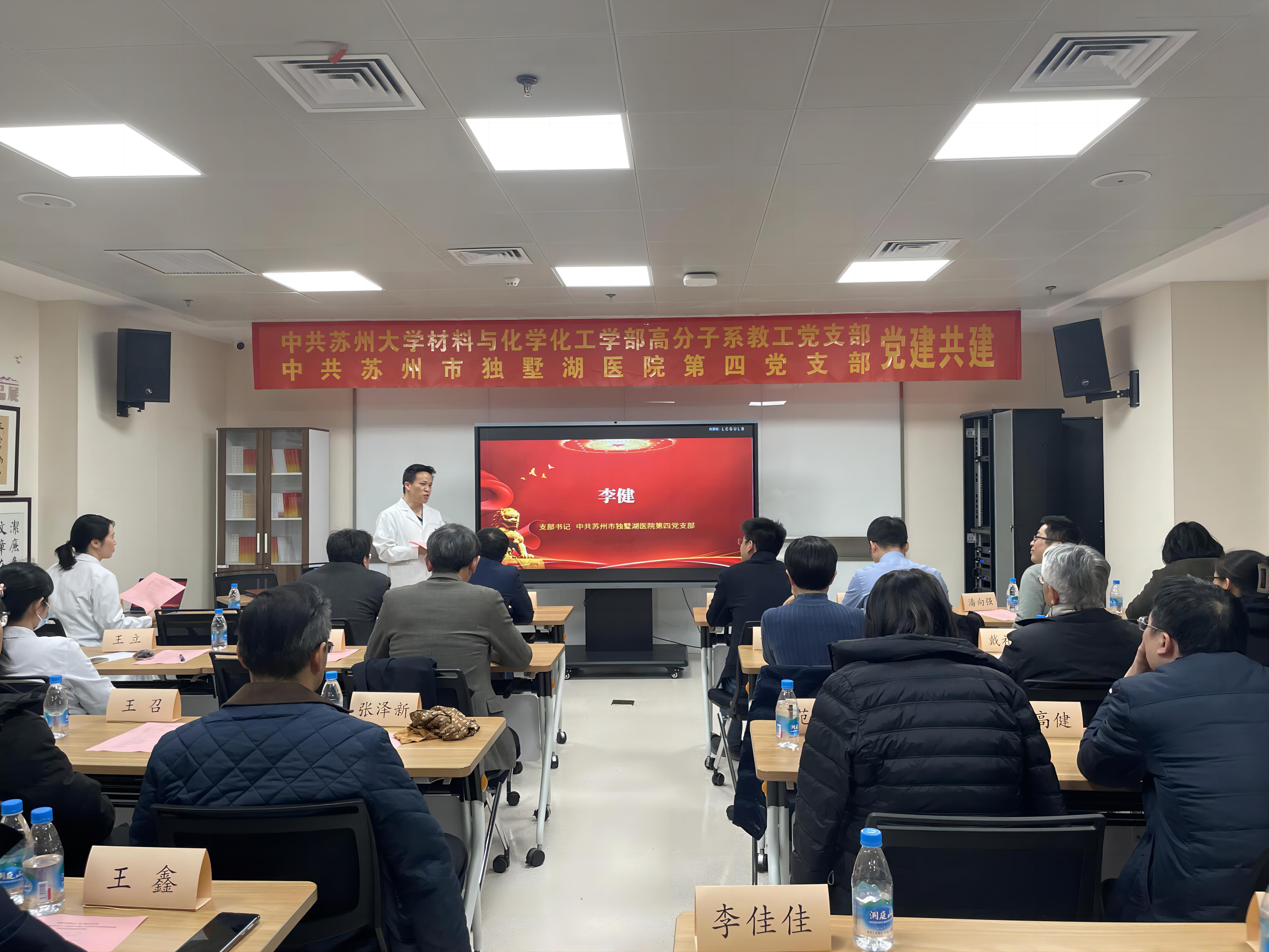党委委员、副主任朱健,独墅湖医院党政办主任傅强,独墅湖医院第四党支部书记李健,高分子系教工党支部书记何金林及双方支部党员、群众代表参加了此次活动。