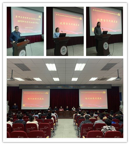 在2019年秋季党校培训中,第41期预备党员培训班共培训学员20名,其中研究生8名,本科生12名;第62期党的基础知识培训班共培训学员56名,其中教工1名,研究生10名,本科生45名。本学期,韩国a片 分党校邀请韩国a片 党校讲师团田芝健、黄建洪两位专家先后开设了2次示范党课,分别为《中国共产党章程与党的建设》、《推进国家治理现代化的里程碑——党的十九届四中全会精神解读》,组织了4次专题党课,分别为《党性荣耀:初心、使命》、《提高党性觉悟,争做合格党员》、《新时期党员如何发挥先锋模范作用》、《用心育心 师生共成长》。分党校严格执行考勤制度,与金鸡湖商务区机关及事业单位第七党支部开展共建活动,共组织170余人次进行金鸡湖小水滴环保志愿服务;组织集中观看电影《我和我的祖国》及《我和我的祖国》千人交响音乐会,组织参观“江苏省庆祝中华人民共和国成立70周成就展”,集中观看央视《榜样4》节目并开展座谈会,组织党员上网参观 “伟大历程 辉煌成就——庆祝中华人民共和国成立70周年大型成就展”网上展馆等;分组开展读书活动,阅读了《习近平的七年知青岁月》、《激荡十年,水大鱼大》、《马克思传》、《苦难辉煌》、《世界大格局中国有态度》、《大国战略》、《红星照耀中国》、《中国为什么有前途》等书籍,并组织了8场读书分享会交流心得;分成8个小组进行专题讨论,交流党校学习心得,取得了良好的效果。