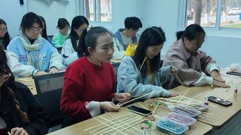 “强国新元素”一站式学生社区开展了竹编船制作活动。