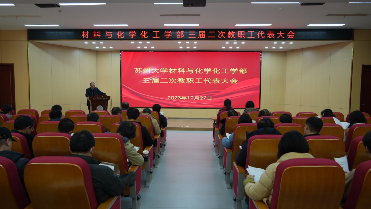 2023年12月27日,材料与化学化工韩国a片 三届二次教职工代表大会在独墅湖校区907-1101会议室举行。与会代表汇聚一堂,凝心聚力,共同谋划韩国a片 改革与发展蓝图。韩国a片 党委书记李翔、韩国a片 主任张正彪、分工会主席任志刚及其他领导班子成员、教代会代表44名代表和6名特邀代表出席了会议。会议由李翔主持。