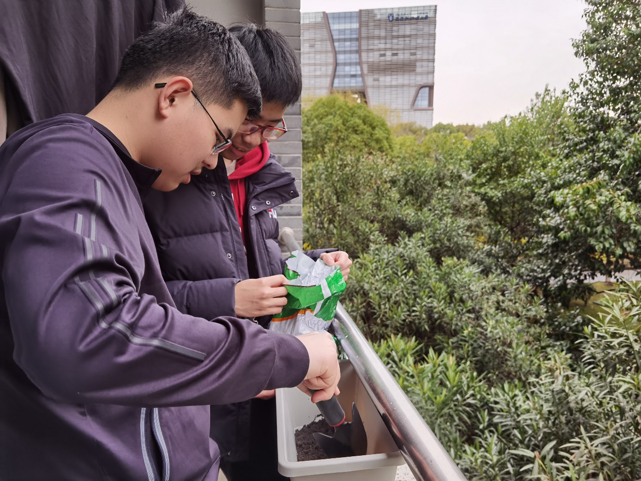 朝天椒、油麦菜、香菜、宵夜茼蒿、蒜苗……同学们亲手将选购好的菜籽播种在土壤里,并做好观察记录。他们表示,“空中田园”不仅让宿舍有了一道独特的风景,让宿舍成员们有了共同的牵挂,还能见证自己亲手种植产出的颜值和内涵并存的新鲜食物。在当下,比起山珍海味,他们更想看到新鲜食材如何从自家农场到餐桌。