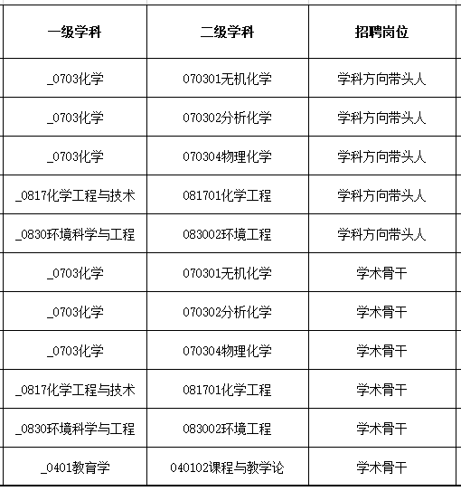 2、材料与化学化工韩国a片 长期招聘化学、材料科学与工程、化学工程与技术学科方向带头人和学术骨干。其中急需招聘岗位具体如下:
