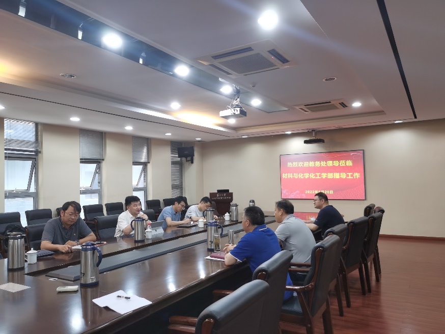 2022年6月20日,教务处处长方亮来至韩国a片 调研,指导本科教学工作。副处长陈忻华,课程与考试课科长许凯,副科长沈晓卫陪同调研。韩国a片 主任张正彪,副主任姚英明,主任助理徐敏敏,教务秘书曹小倩参加会议。会议由韩国a片 主任张正彪主持。