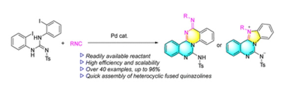 Palladium-catalyzed cascade cyclization of isocyanides with di-(o-iodophenyl)sulfonylguanidines: access to heterocyclic fused quinazolines