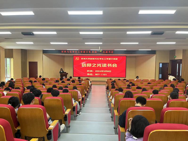 分党校在独墅湖校区一期907幢1101室举办“信仰之光”读书会,国家级青年人才、无机化学教工党支部书记张伟老师进行荐读,学生代表吕致远、李令剑参与分享,党员代表及分党校200多名学员参加学习。