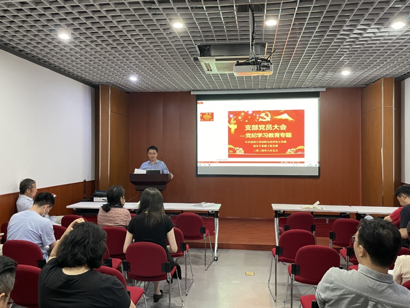 高分子系教工党支部召开党员大会,开展学习《中国共产党纪律处分条例》专题教育,推动党纪学习教育入脑入心,走深走实。