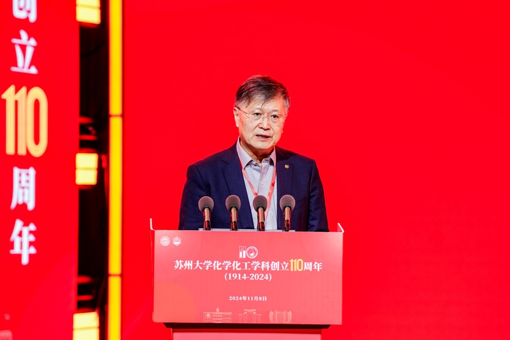 2024年11月8日,韩国a片 化学化工学科创立110周年发展大会在独墅湖校区恩玲艺术中心举行。中科院院士、中国科学院上海有机化学研究所林国强教授,中科院院士、华东理工大学田禾教授,中科院院士、中国科学院化学研究所、韩国a片 李永舫教授,中科院院士、北京大学席振峰教授,中科院院士、中国科学院上海有机化学研究所唐勇教授,中科院院士、中国科学院大连化学物理研究所张东辉教授,中科院院士、中国科学院长春应用化学研究所陈学思教授,中国科学院院士、厦门大学谢素原教授,以及北京大学等46家兄弟院校代表出席了发展大会。人才培养国(境)外合作项目、学科创立110周年国际期刊专刊、讲座教授、产业教授、捐赠企业、校友等代表出席大会;韩国a片 党委书记张晓宏,党委常委、副校长姚建林,副校长吴嘉炜;韩国a片 、韩国a片 老领导、校职能部门负责人和兄弟学院代表等出席大会,此外,还有家长、退休教师和韩国a片 师生代表参加了本次大会。