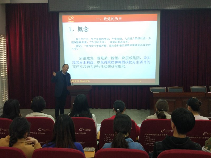 讲座伊始,李翔书记就提出了“党性”一词,并以“党性”为主线,向同学们阐述了端正入党动机、坚守入党初衷、不断磨砺党性的重要性。李书记通过深入浅出地解读中国共产党的发展历史,让同学们对党有了更全面的认识。同时李书记强调要积极参加各种形式的学习和实践,通过活动就能完整地了解马克思主义在中国是如何落地生根的。同学们在今后的学习生活中要严格要求自己,提高政治思想素养,全面深刻地理解和把握党性的内涵要义、大力弘扬勇于担当、乐于奉献的精神,努力做到争先创优!