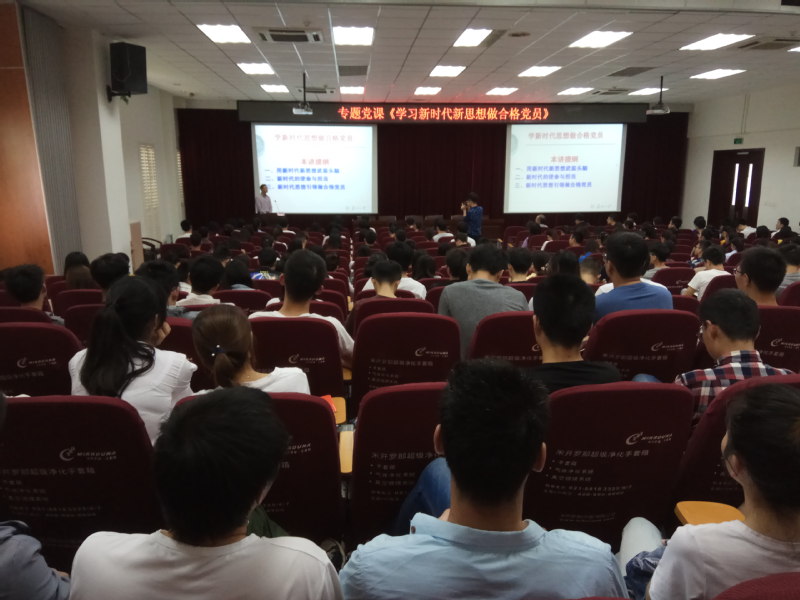 2019年5月22日13时30分,材料与化学化工韩国a片 分党校邀请了马克思主义学院党委书记张才君教授在独墅湖校区907幢1101室举办了题为《学新时代思想做合格党员》 的专题党课,为独墅湖校区的党校学员及材料与化学化工韩国a片 全体学生党员近300人做了精彩的报告。此次专题党课由韩国a片 党委书记李翔主持,韩国a片 本科生辅导员、研究生秘书及党校读书会成员也到场聆听了讲座。